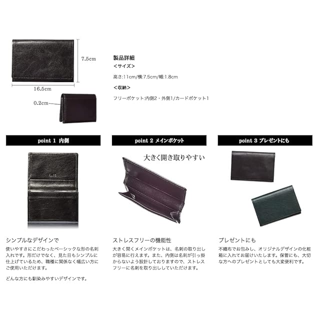 ✅■サイズ:横7.5×縦11×幅1.8㎝ ■仕 様:カードポケット1/フリーポケット内側2 外側1 ■素 材:水牛本革(バッファローレザー) ■金具カラー:アンティークゴールド ■付 属:箱