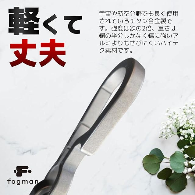 【軽くて丈夫】宇宙や航空分野でも良く使用されているチタン合金製です。強度は鉄の2倍、重さは銅の半分しかなく錆に強いアルミよりもさびにくいハイテク素材です。