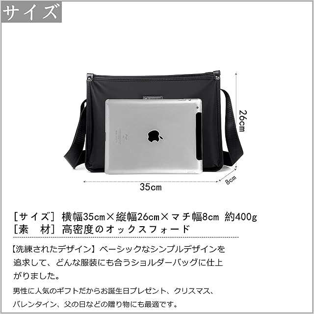 【対象・場所を問わずショルダーバッグ】シンプルの落ち着いた雰囲気で、性別・年齢・季節・場所を問わずに、男性にも、女性にも、学生(高校生)から大人の方まで適用できます。日常のカジュアルにも、ビジネスにも、ショッピング、アウトドア、スポーツ、旅行、登山、通学、通勤、出張などの様々なシーンで活躍できます。母の日、父の日、誕生日、クリスマスなどの時の贈り物にも最適です。