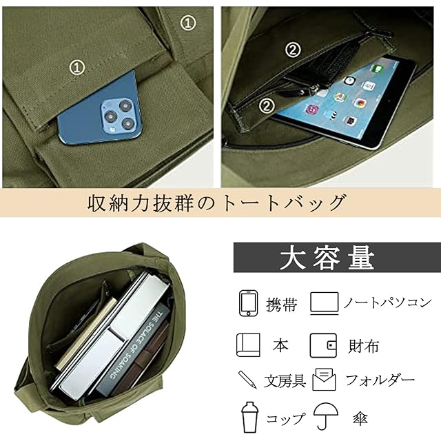 [Wowcarbazole] トートバック キャンバス 大容量 ショルダーバッグ 無地 肩掛け バッグ キャンバストートバッグ レディース メンズ ファスナー付き 一泊 旅行バック 通学