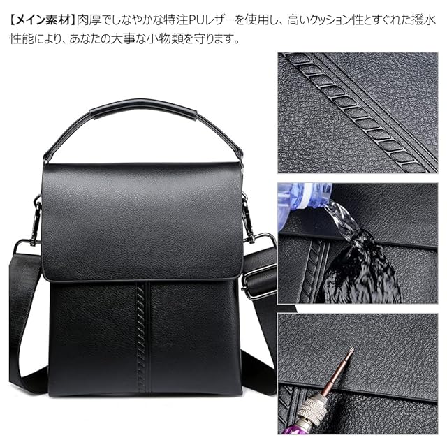 5、【仕様】重さ約0.5KG 、サイズ約20*4*24cm Ipad Mini収納可、収納仕様:メインポケットx3、ファスナーポケット×1、オープンポケット×1 正オープンポケット×1、背ファスナーポケット×1 【メイン素材】肉厚でしなやかな特注PUレザーを使用し、高いクッション性とすぐれた撥水性能により、あなたの大事な小物類を守ります。
