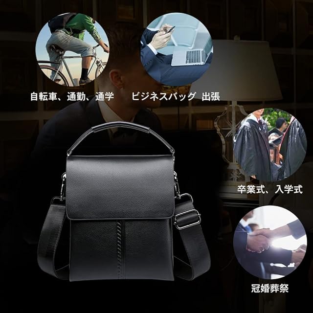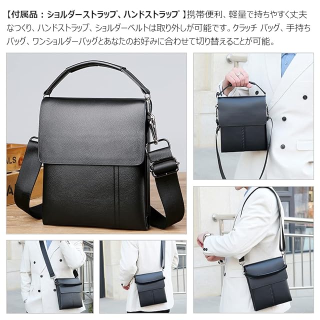 [Whatna] 革 セカンド バッグ メンズ 3way 斜め掛け 手提げクラッチ ショルダーバッグ ハンドストラップ付 ショルダーベルト付 3室仕切 厚 手 レザー 結婚式 ビジネス フォーマル 冠婚葬祭 紳士用 自転車かばん 男性用プレゼント809S1 (黒)