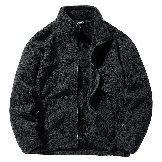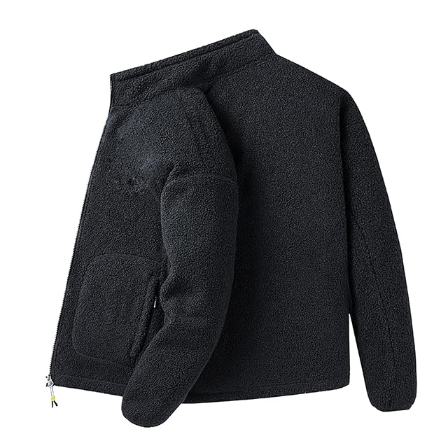 [Manatsulife] ジャケット メンズ 立ち襟 裏起毛 モコモコ 厚手 ボアフリース 防寒 保温 防風 静電気防止 カジュアル アウター 冬 2265 (ブラック,L)