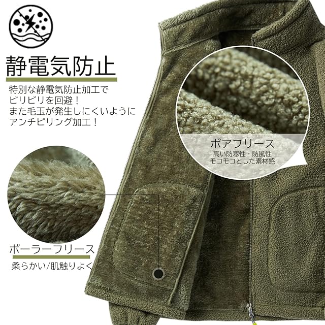 【モコモコと柔らかい】特有のモコモコとした素材感と高い防寒性が特徴で、秋冬の定番アウターのひとつとして人気を集めています。また裏地にポーラーフリースを使用し暖かく柔らかい!【防寒・防風】冷たい外気に立ち向かう身体を暖かく包む、厚手のフリース素材で作られたアイテム。寒さに強く、防風保温に優れ、暖かく着られます。