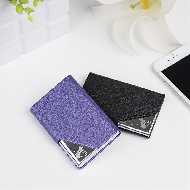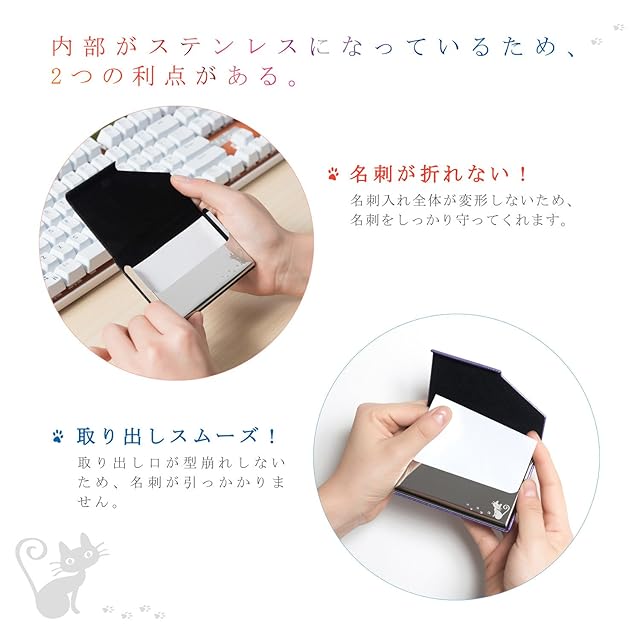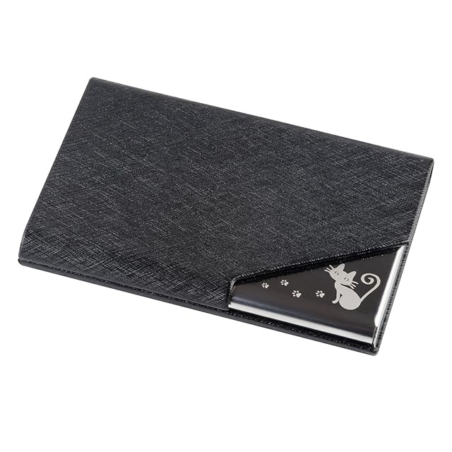 [Gumira] 名刺入れ メンズ レディース 選べる多色 名刺が折れない 専用の化粧箱が付き (ブラック, 猫)