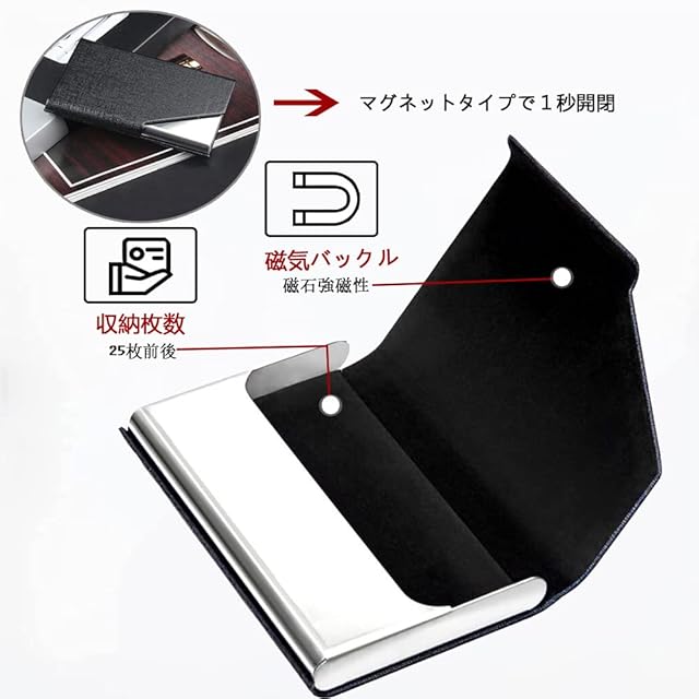 【耐久磁気力】磁気封止を内蔵し、耐久力がある、磁石の内部設計により、名刺の取り出しや配置が簡単になった。