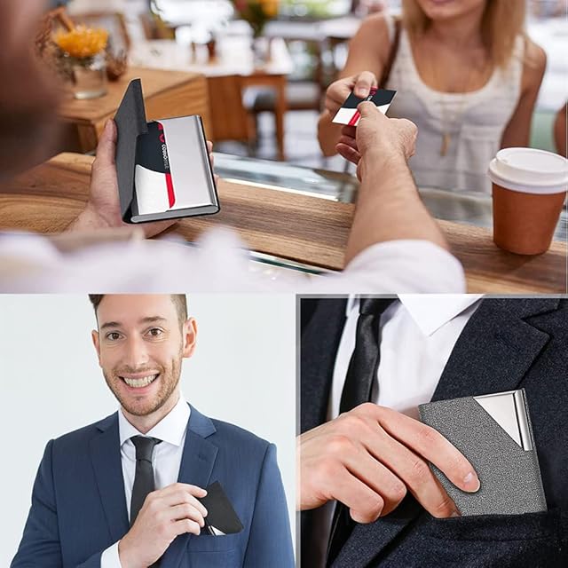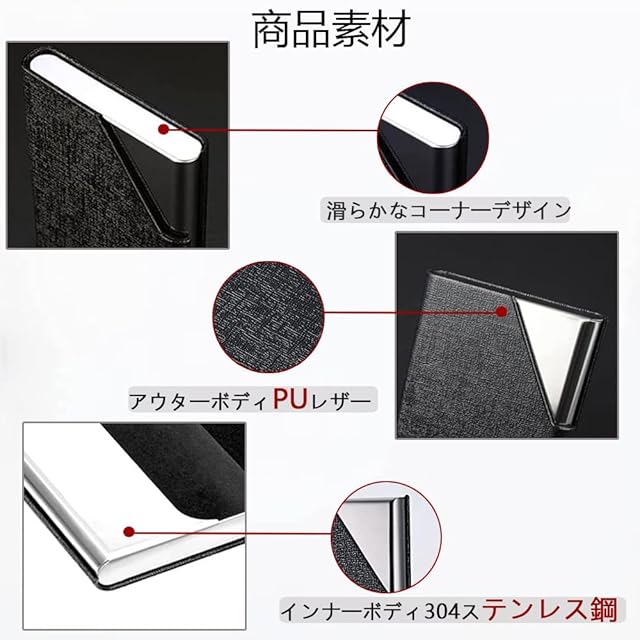 【高級素材】優れた金属素材ステンレスとPUレザーを組み合わせた、大きな力を加えても、名刺が曲がる心配はありません。