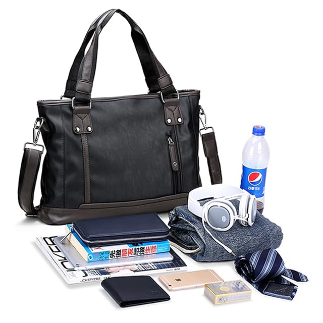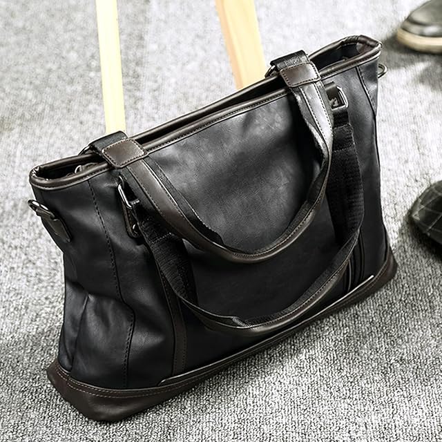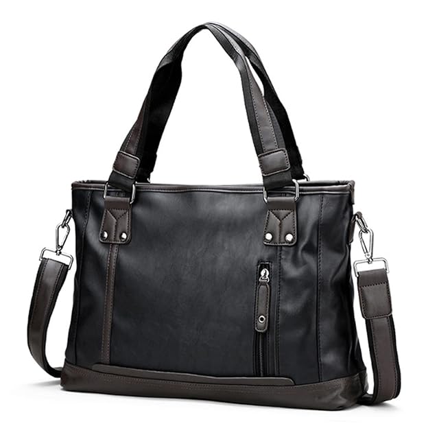 [Takusan Shopping] ビジネスバッグ 仕事かばん 通勤バッグ 手持ち 肩掛け 斜め掛け 3way 通学 旅行 就活 成人式 ジッパー 自立 PUレザー シンプル 無地 メンズ 通勤 バック a4 ばっく 軽量 大容量 人気 軽い人気 弁当 防水 軽い コンパクト ショルダー バッグ トート パソコン おしゃれ 2ウェイ 頑丈 手提げ (ブラックレザー)