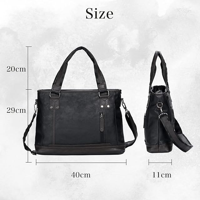 【商品仕様】《カラー》ブラック・ブルー 《素材》PUレザー 《留め具の種類》 ファスナー 《サイズ》縦29cm×横40cm×マチ11cm 持ち手高さ:20cm 《重量》950g 《機能》・大口×1:止水ファスナー仕様 ・主ポケットx1 ・内ポケットx1 ・ラップトップ仕切りx1 ・外部ポケットx2 《ショルダー紐》 左右付け替え可能