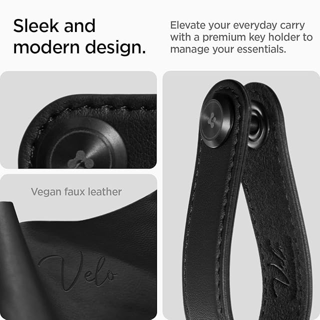 [Spigen] Valentinus キーホルダー レザーキーオーガナイザー ミニリストコンパクトキーホルダー キーリング付き ブラック