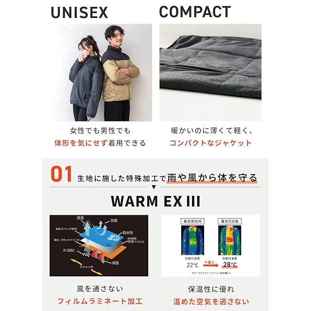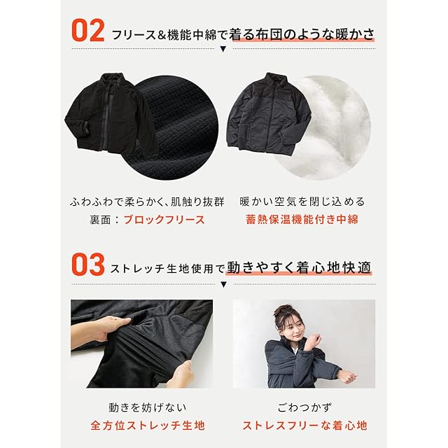 [IMPACTORY] 3L ブラック×ブラック 防風裏 ウォーム ジャケット フリース ダウンジャケット メンズ ダウン 軽量 厚手 ダウン ジャケット 防寒 保温 防風 防寒着 アウター ジャンパー 大きいサイズ MS-135-003L