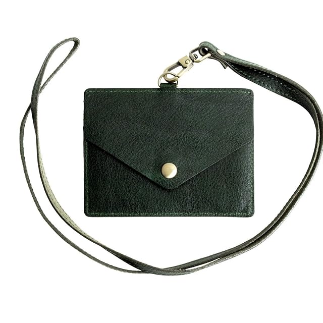 [RafiCaro] パスケース IDカードホルダー Wポケット 定期入れ本革 イタリアンレザー 首掛け ネックストラップ付 idケース 社員証 カードケース メンズ レディース グリーン