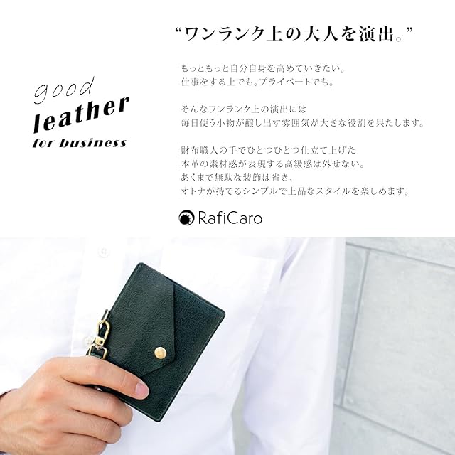 [ブランド] RafiCaro - ラフィカロ 【身につけるこだわり】毎日がもっとハッピーになる。 ポイントは裏面のポケット 可愛い封筒のようなボタン留めのポケットになっています。 カードだけでなく、大事なメモやお金をそっと入れておいてもOK 素材も使用するにつれてエイジングがかかり味わいが深くなるイタリアンレザーを使用。 末永く使えるパートナーとして最良の素材です。
