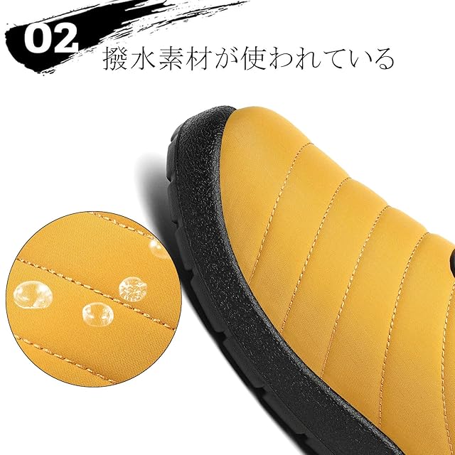 撥水生地: 表には撥水素材を採用し、生活防水レベルに達し、キッチンまたバスルームでも靴を濡れることを心配なく、お手入れも便利です(ご注意: 100%全面防水処理ではありません)