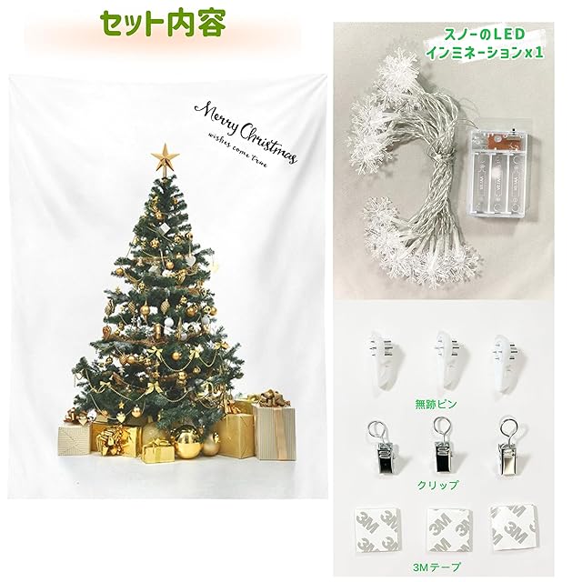 【商品の仕様】 タペストリーのサイズ(約) : 100×150cm タペストリーの材質:ポリエステル | 柔らかで洗濯OK、色落ちしないプリント仕様です。裁断部分は縫って処理しております。 タペストリーの重量(約):250g 商品の内容:タペストリーx1、スノー形ライトx1、3Mテープx2、無跡ピンx3、クリップx3 スノー形サイズ:3.5x 3 x 0.5cm
