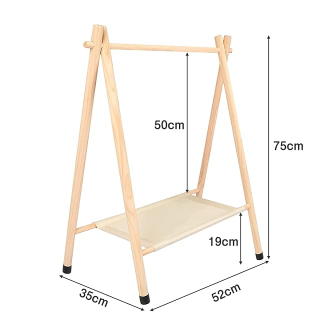 <br>天然木を使用した上質なハンガーラックにはナチュラルな雰囲気があり、どんなインテリアにもマッチします。丈夫で安定性にも優れ、たくさん掛けてもしっかりしています。 <br>ペット専用のハンガーラックを使えば、毎日のお着替えも楽しくなります。ワンちゃんや猫ちゃんのお洋服をすっきり収納しながらおしゃれにディスプレイできるので、お店のような可愛らしい空間を演出します。 <br>幅52cmとコンパクトながらも、たっぷり収納できます。棚も付いているので、リードや散歩バッグを掛けたり、おもちゃや小物も置けます。 <br>木製ラックは無塗装で健康と環境にも優しいです。表面は細かく磨かれ、滑らかで鋭い部分がなく、ペット服はもちろん、ベビー服や子供服にも使えるお洋服ラックです。 <br>コンパクトで軽量だから移動もラクラクで片付け、組立ても簡単です。玄関先や個室、ペットグッズショップにもピッタリです。
