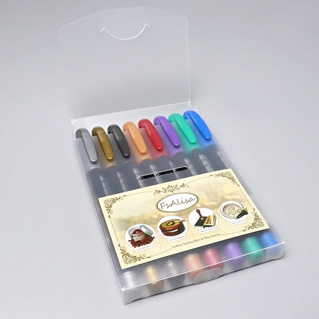 商品名:FsAlisa シーリングワックス 専用 カラーペン シーリングスタンプ 塗り メタリックマーカーペン DIY 封蝋 招待状 結婚式 祝福 記念 祝い メッセージカード 手作り 手帳ページ 年賀状 ガラス スチールなどの表面にフィット (金属カラーペン*8色)